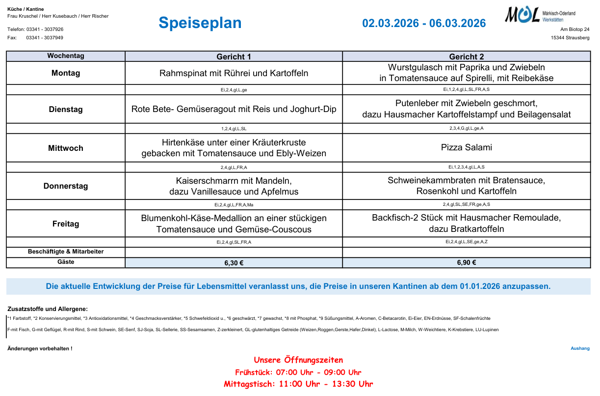 Dokument: Speiseplan 10. KW 2026 Kantine Strausberg